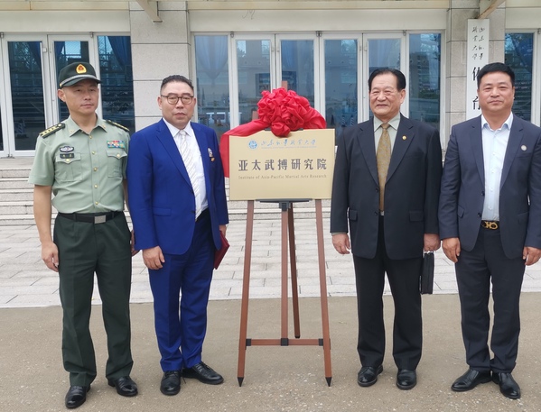 本站讯 传承武术文化,创新体育教育。9月16日,168体育手机版app下载亚太武搏研究院揭牌仪式在我校威海校区举行。